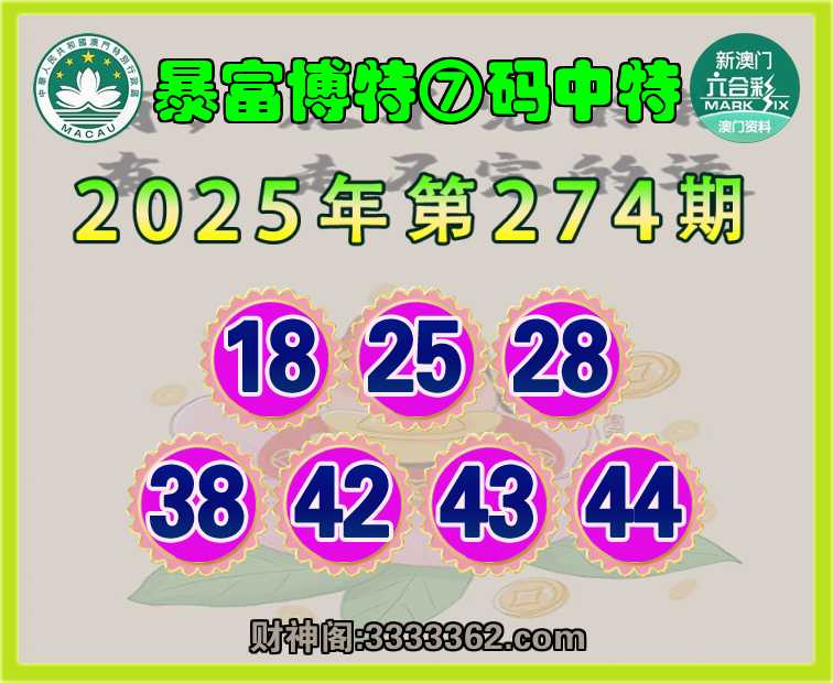 274期:【暴富博特】 🥧⑦码中特🥧【18.25.28.38.42.43.44】开:44