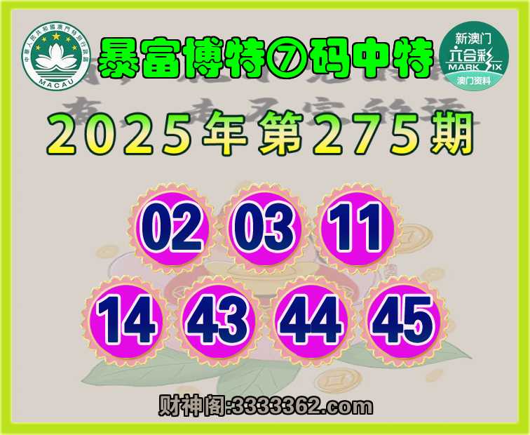 275期:【暴富博特】 🥧⑦码中特🥧【02.03.11.14.43.44.45】开:45