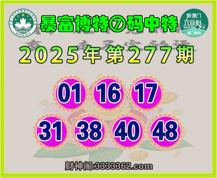 277期:【暴富博特】 🥧⑦码中特🥧【01.16.17.31.38.40.48】开:16