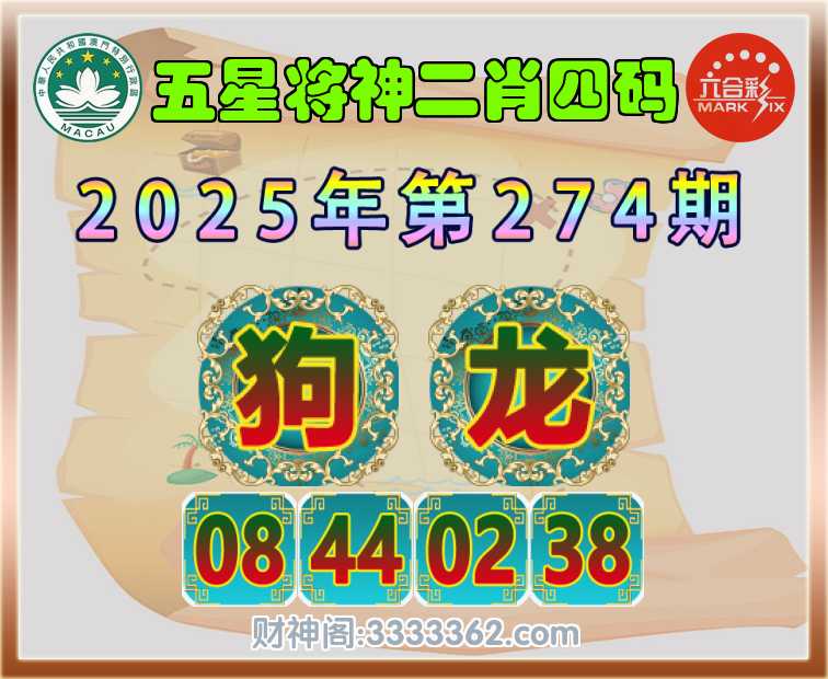 274期: 五星将神 🥖二肖四码🥖【龙】【08.44.02.38】开:狗44