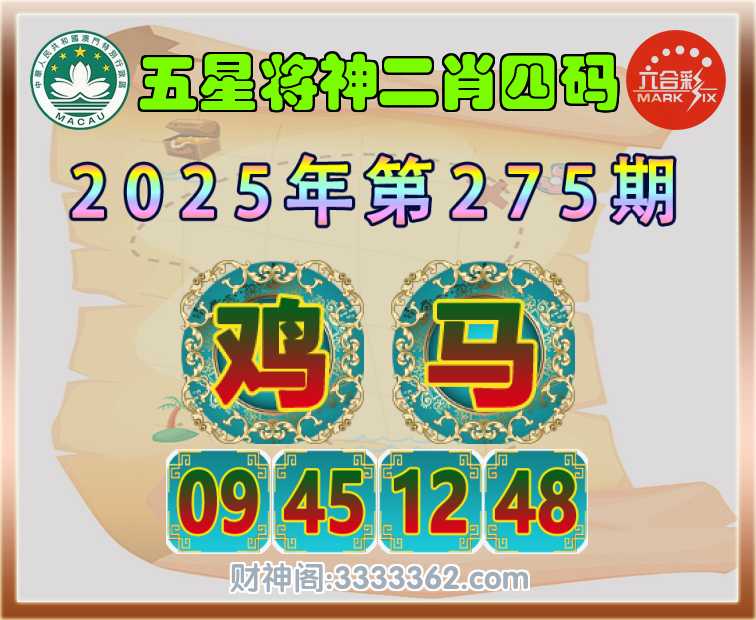 275期: 五星将神 🥖二肖四码🥖【马】【09.45.12.48】开:鸡45