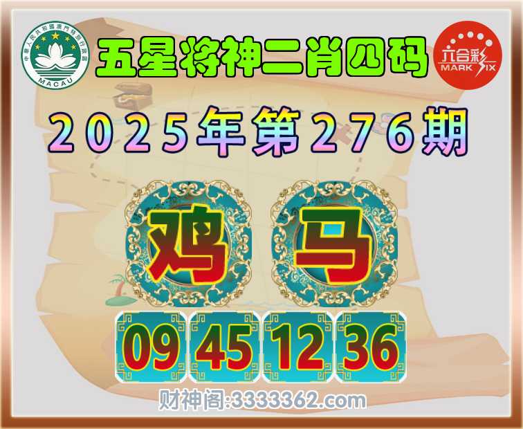 276期: 五星将神 🥖二肖四码🥖【马】【09.45.12.36】开:鸡09