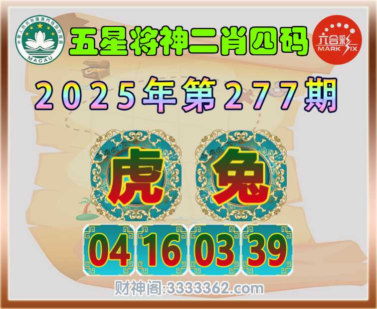 277期: 五星将神 🥖二肖四码🥖【兔】【04.16.03.39】开:虎16