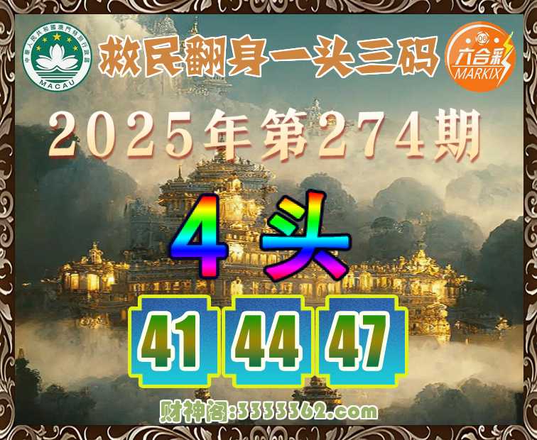274期:【救民翻身】 🚣一头三码🚣【4头主:41.44.47】开:狗44