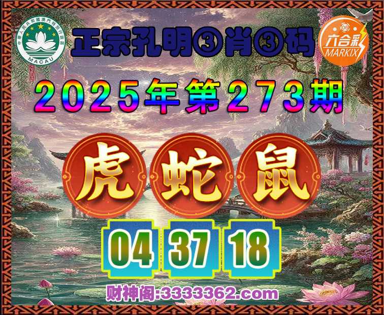 273期:『正宗孔明』 🚣③肖③码🚣【蛇鼠】【04.37.18】开:虎04