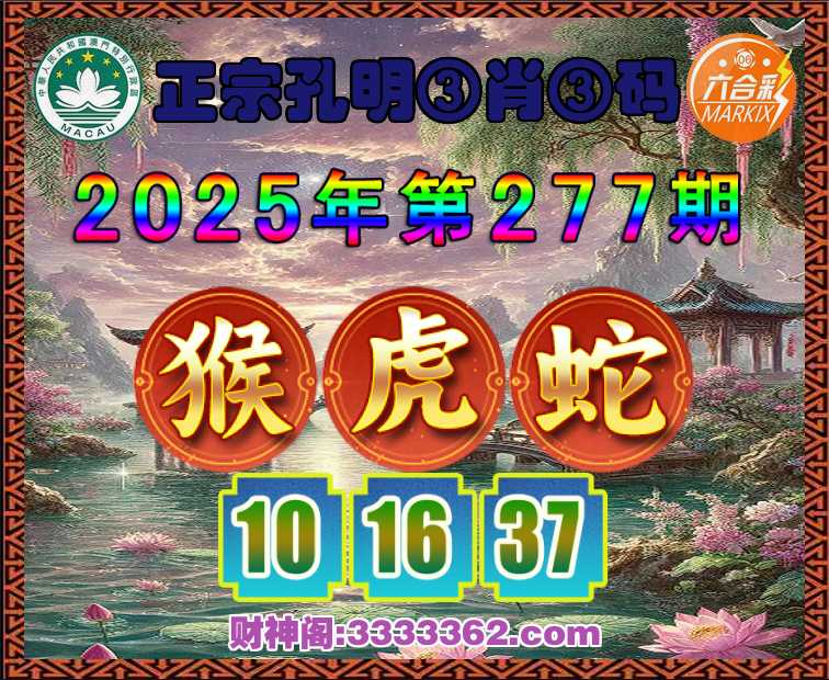 277期:『正宗孔明』 🚣③肖③码🚣【猴蛇】【10.16.37】开:虎16